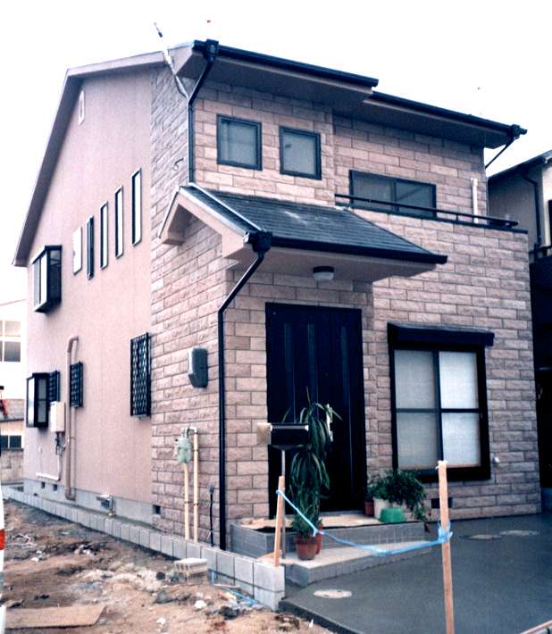 カナダ輸入住宅第1棟目.前面外壁はパーマストーンを張る。