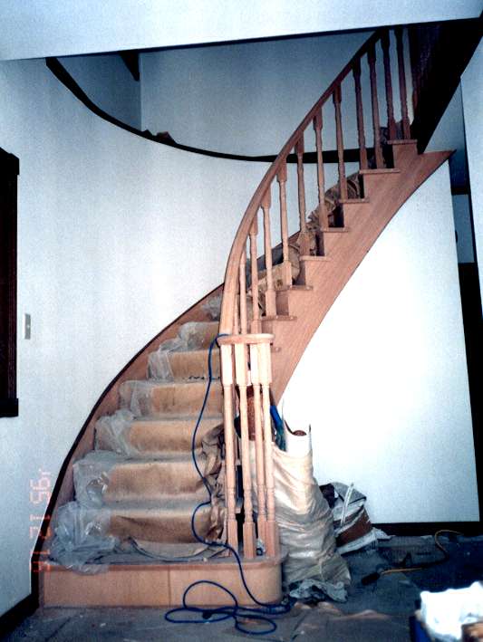 施工途中のオーク廻り階段です。壁面も階段にあわせてカーブさせている。