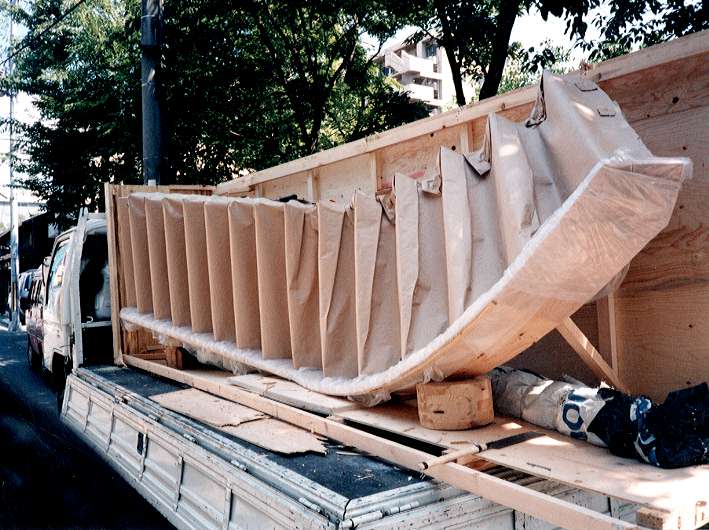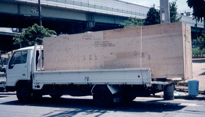 神戸港より引き取ったオーク廻り階段の入った木箱です。